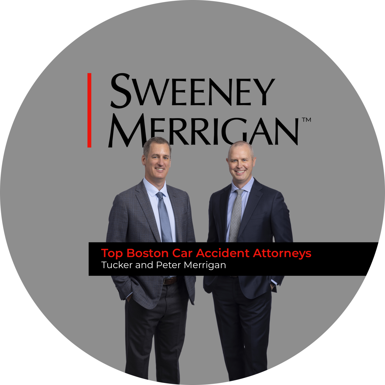 Our trusted legal team of Boston car accident lawyers is led by our experienced co-managing partners, J. Tucker Merrigan and Peter M. Merrigan.